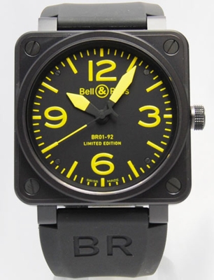Replica Bell & Ross BR01 BR01-92 Yellow watch employs Automatic movement and Black Rubber band. Black dial brings you great reading experience. Besides, the watch is also equipped with Scratch resistant Sapphire Crystal. It is high time to get this Square shape watch!