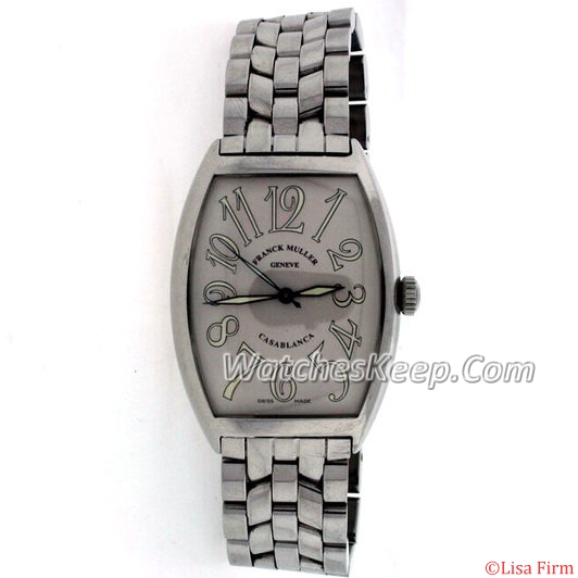 Replica Franck Muller Casablanca 6850 watch employs Automatic movement and Beige Stainless Steel band. Silver dial brings you great reading experience. Besides, the watch is also equipped with Scratch resistant Scratch Resistant Sapphire Crystal. It is high time to get this Tonneau shape watch!