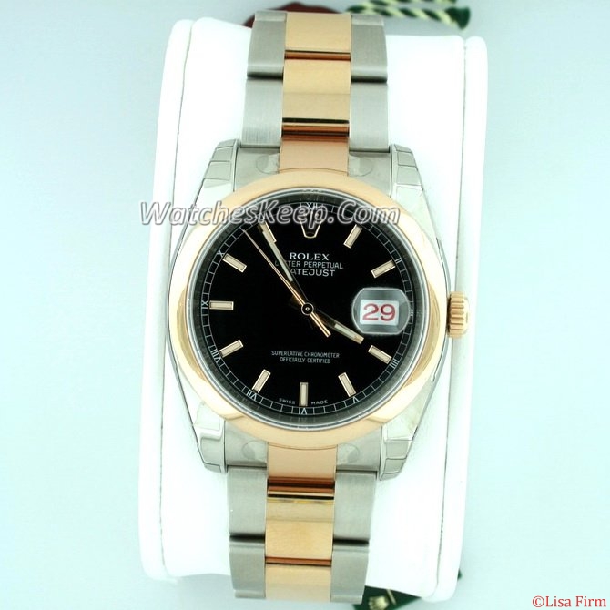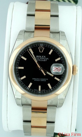 Replica Rolex Datejust Men's 116201 watch employs Automatic movement and Rose 18k Rose Gold and Stainless Steel band. Black dial brings you great reading experience. Besides, the watch is also equipped with Scratch resistant Scratch Resistant Sapphire Crystal. It is high time to get this Round shape watch!