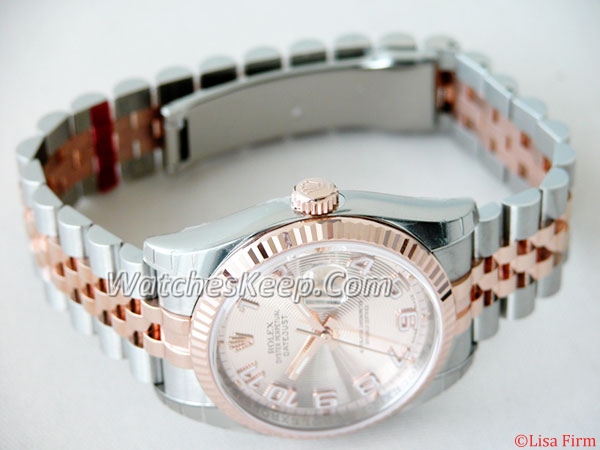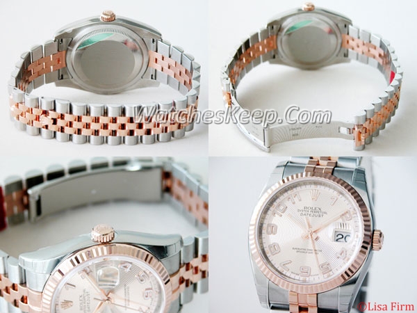 Replica Rolex Datejust Men's 116231 watch employs Automatic movement and Silver/Gold 18kt Rose Gold And Stainless Steel band. Silver Concentric Arabic dial brings you great reading experience. Besides, the watch is also equipped with Scratch resistant Sapphire Crystal. It is high time to get this Round shape watch!