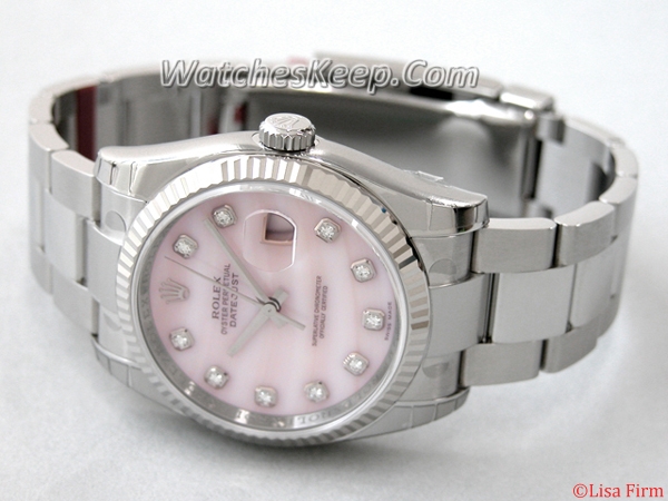 Replica Rolex Datejust Men's 116234 watch employs Automatic movement and Silver Stainless Steel Oyster band. Pink MOP Diamond dial brings you great reading experience. Besides, the watch is also equipped with Scratch resistant Sapphire Crystal. It is high time to get this Round shape watch!