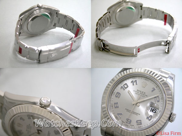Replica Rolex Datejust Midsize 116334 watch employs Automatic movement and Silver Stainless Steel Oyster band. White Arabic Dial dial brings you great reading experience. Besides, the watch is also equipped with Scratch resistant Sapphire Crystal. It is high time to get this Round shape watch!