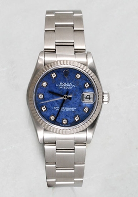 Replica Rolex Datejust Midsize 78000 watch employs Automatic movement and Silver Stainless Steel Oyster band. Blue dial brings you great reading experience. Besides, the watch is also equipped with Scratch resistant Sapphire Crystal. It is high time to get this Round shape watch!