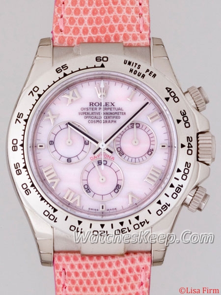 Replica Rolex Daytona 116519 watch employs Automatic movement and Pink Pink Crocodile Leather band. Pink dial brings you great reading experience. Besides, the watch is also equipped with Scratch resistant Sapphire Crystal. It is high time to get this Round shape watch!