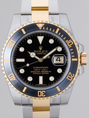 Replica Rolex Submariner 116613BKSO watch employs Automatic movement and Silver/Gold 18kt Yellow Gold and Stainless Steel Oyster band. Black With 8 Diamonds and 3 Sapphires dial brings you great reading experience. Besides, the watch is also equipped with Scratch resistant Sapphire Crystal. It is high time to get this Round shape watch!
